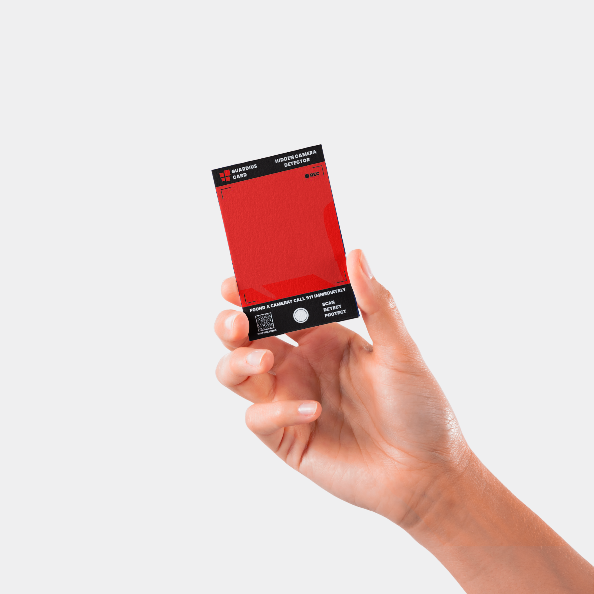 All you need is your phone with a flashlight and Guardius Card to scan the room with red infrared light.